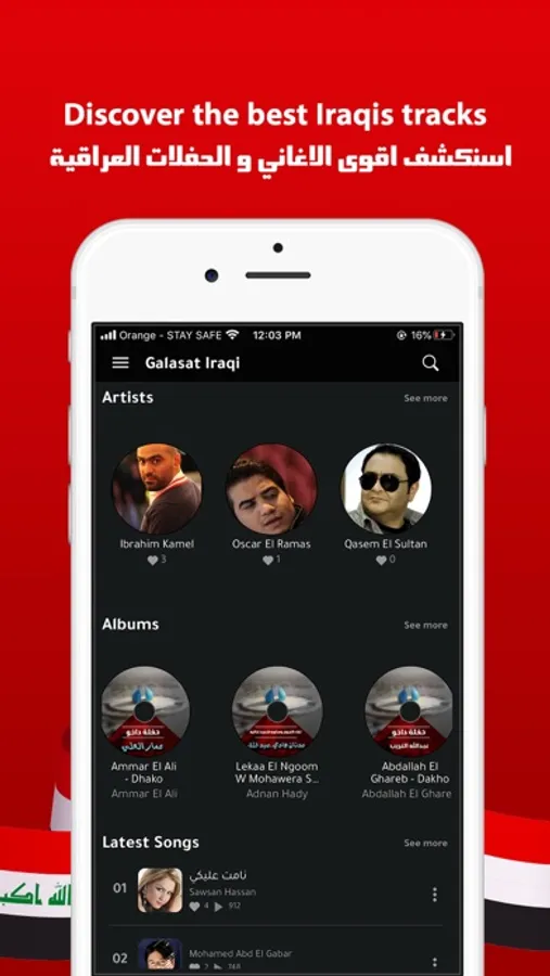 Listen to all the newest Songs, Music, Parties and Galasat Iraqi with the biggest stars in Iraq