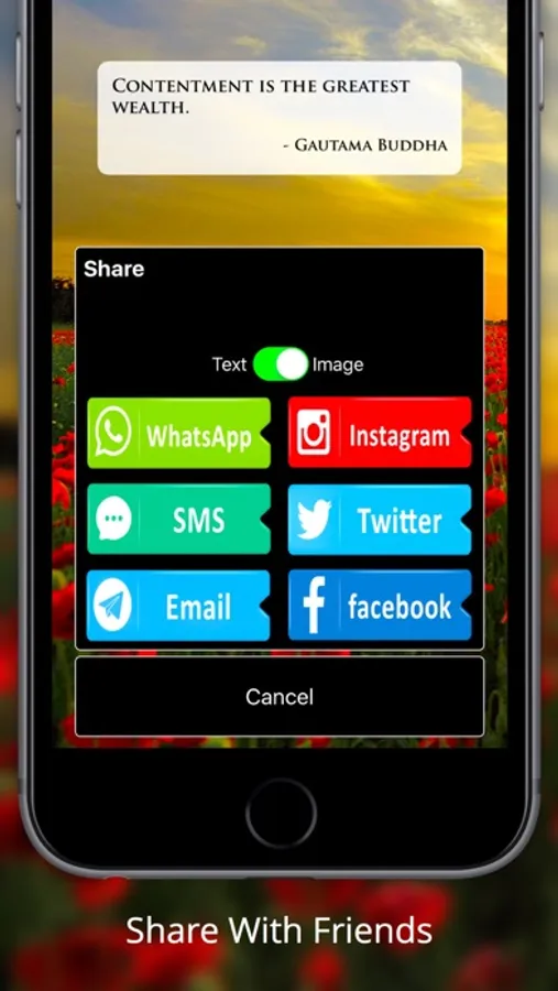 - Sharing with your friends has never been easier! This is the most sharable App on Buddhism, featuring share capabilities via, Facebook, Twitter, WhatsApp, Instagram and more!