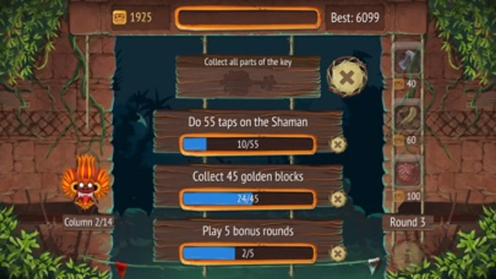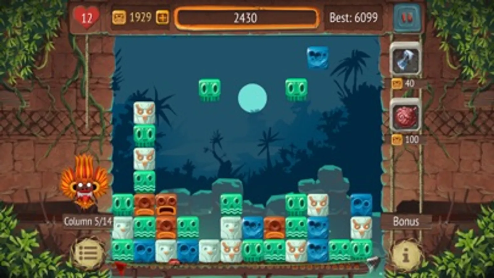 Welcome to the coolest survival match2 time killer game! Gain the enormous score by removing stacks of blocks with the same color and don't forget to tell your friends about it. Evil shaman throws more and more blocks to you, don't let them fall into the abyss until the last drum beat.