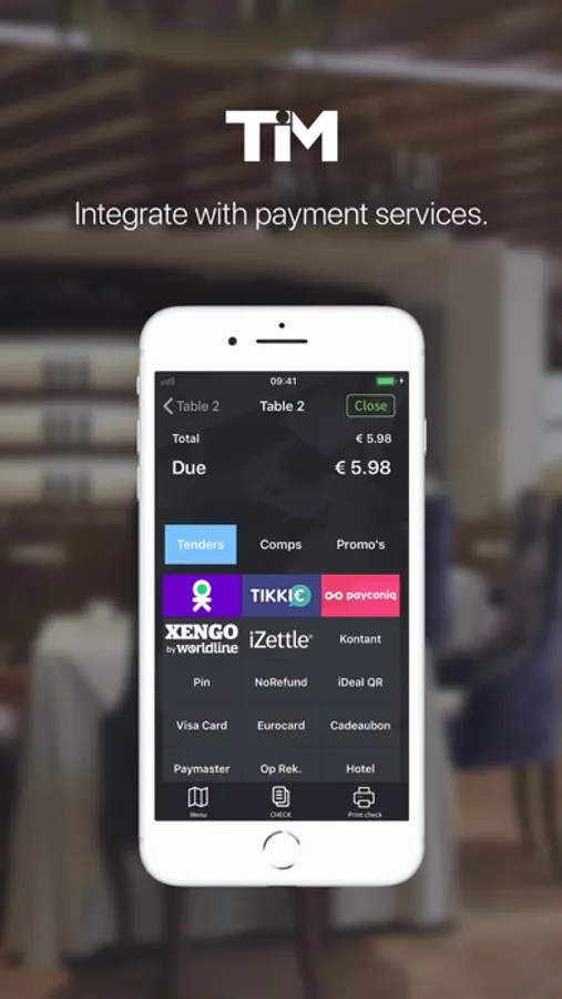 - Payment interfaces for: Payconiq, Tikkie, iDeal, OK Betalen, iZettle, Splitt and Xengo