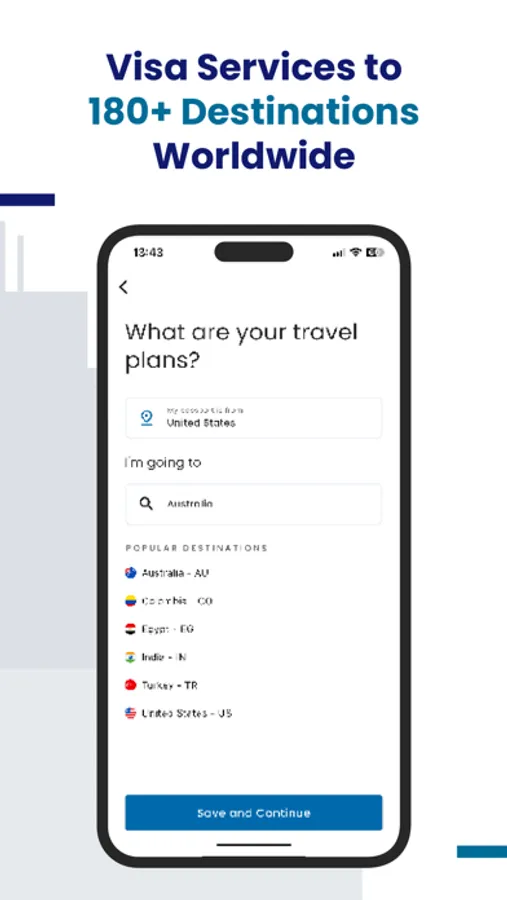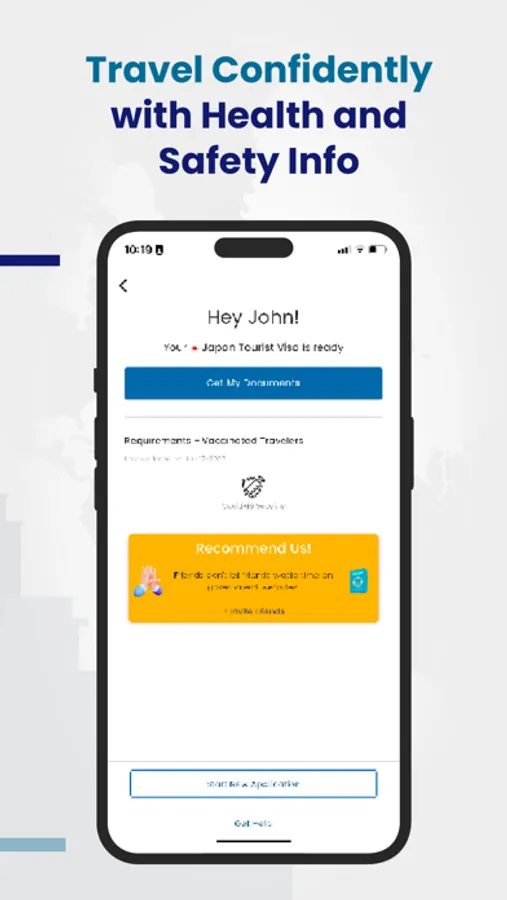 Check if you need a travel visa or health declaration for your next trip and get it in a few taps! No more confusing government forms, waiting in lines, or trips to the embassy—get the travel documents you need with our secure and 100% online application process.