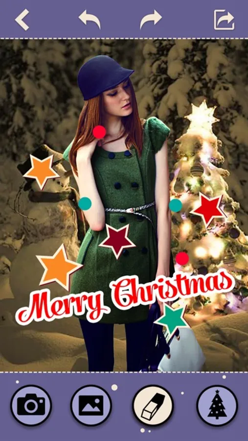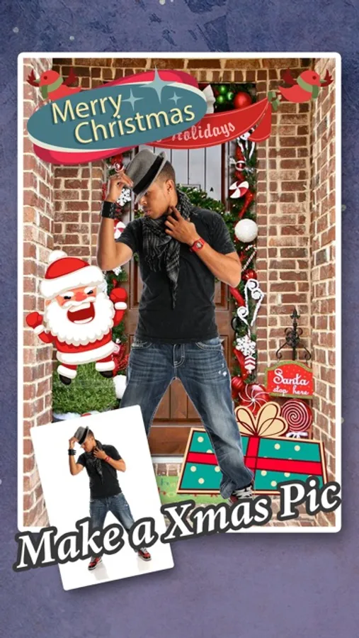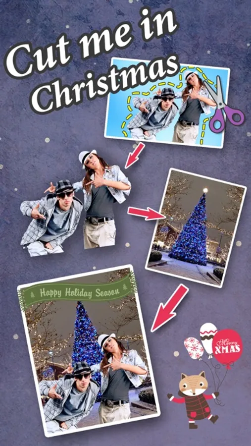 Cut Me In Christmas Photos lets you cut out sections of an image in any shape and paste it to selected Christmas background photos. Then you can add stickers to decorate your artwork and share with your friends.