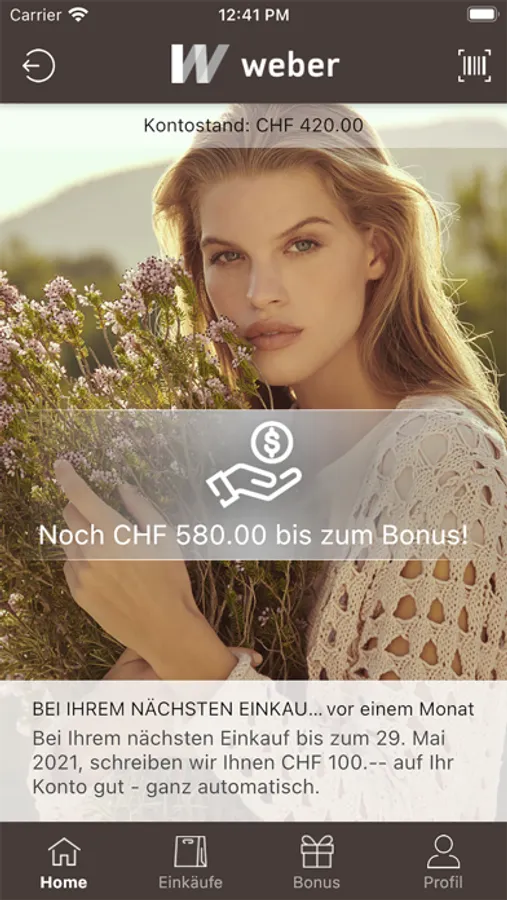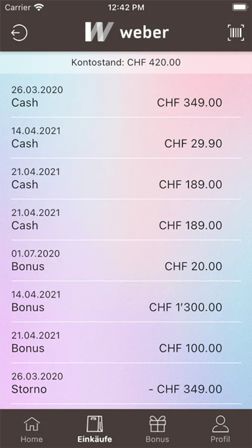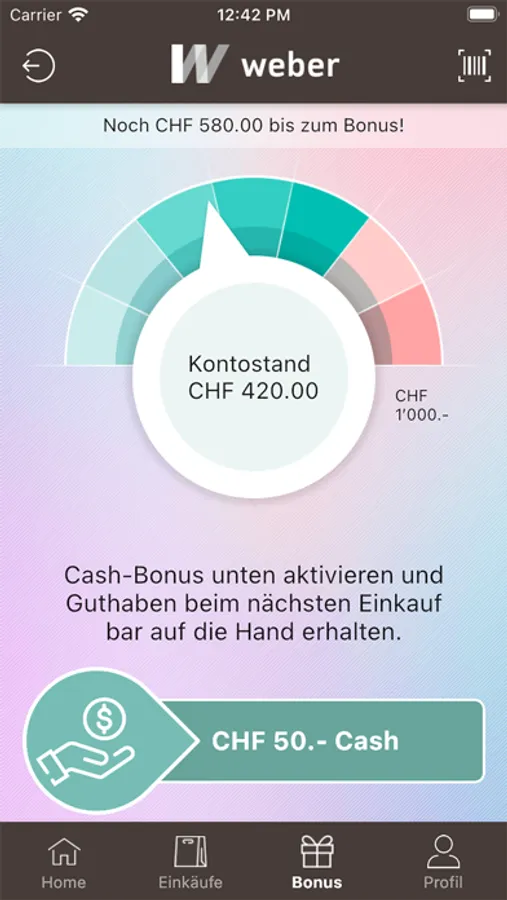 Kundenkarte: Greifen Sie bequem auf ihre Kundenkarte, webercard Boni und Einkaufshistorie zu
