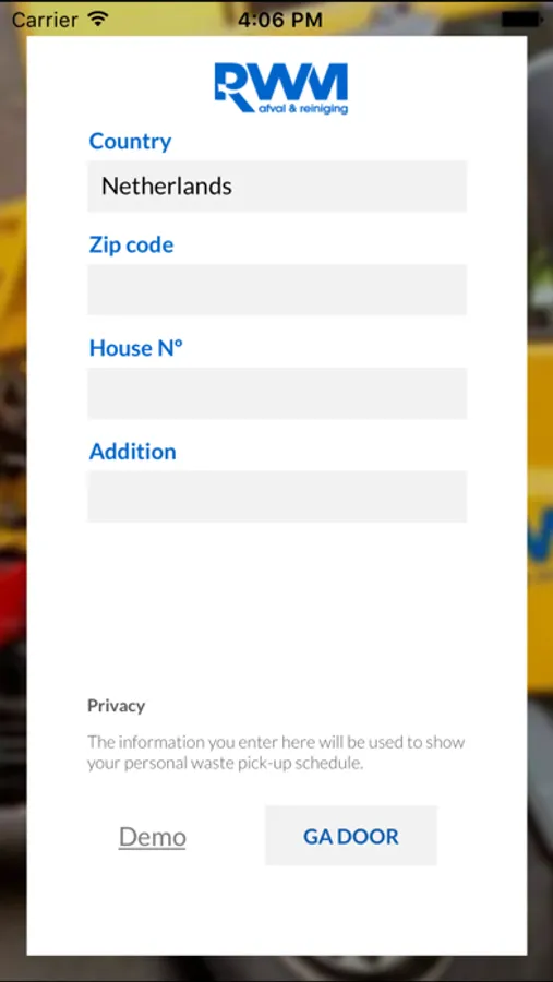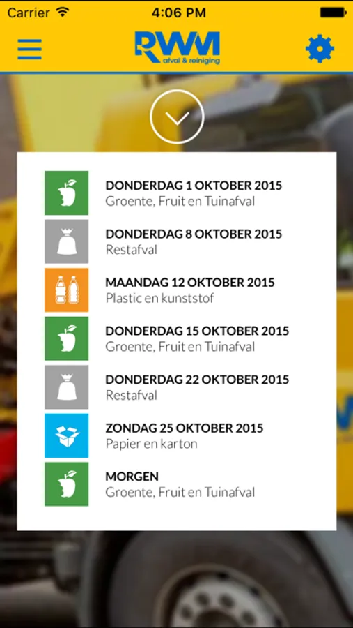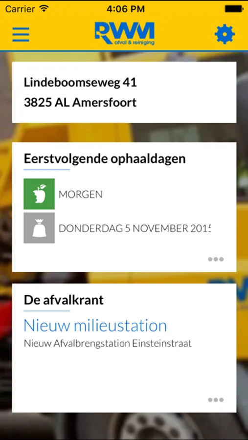 Het enige wat u hoeft te doen is eenmalig uw postcode en huisnummer opgeven. Vanaf dat moment toont de App u een gepersonaliseerd overzicht.