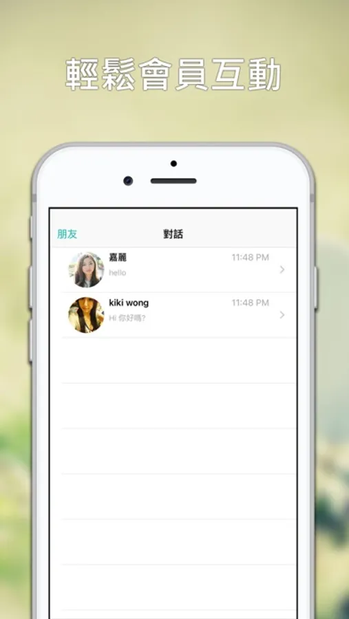 - 內建即時訊息功能,可與成為朋友的會員即時聊天