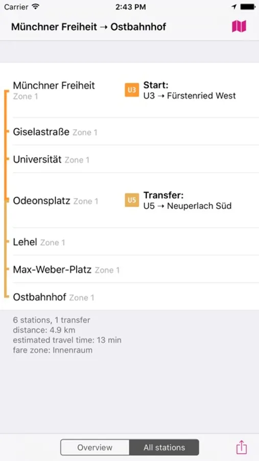 ROUTE PLANNER - instantly finds the fastest route and displays it on the map including transfer stations.