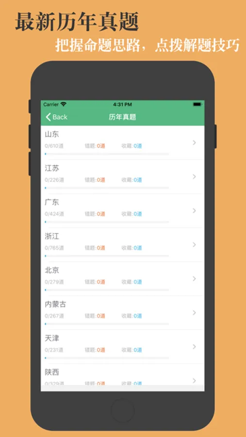 3、历史真题:精选最历年真题,上海、重庆、辽宁、福建、浙江、安徽等多个省、市。