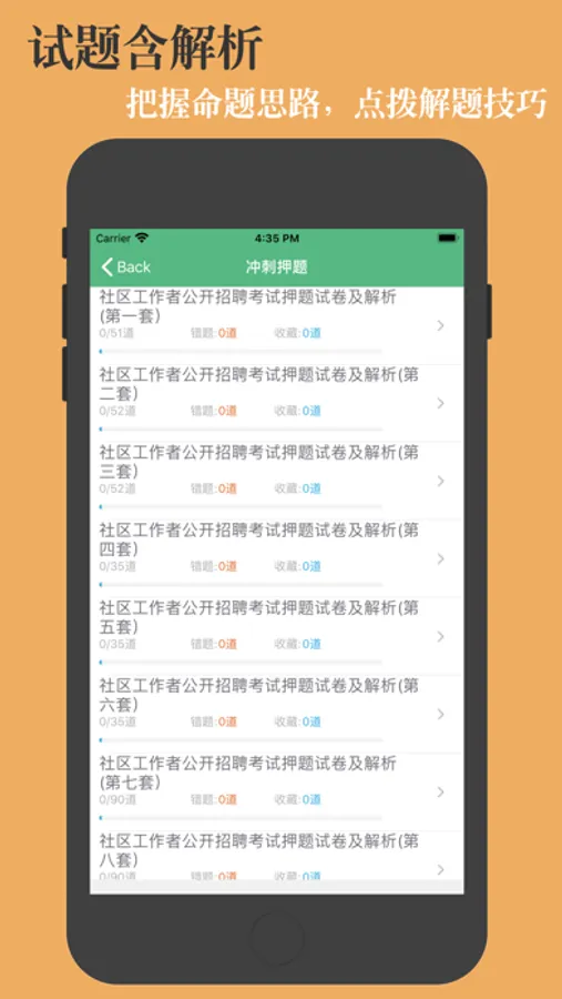2、冲刺押题:最新考试押题8套,是目前最切合社区考试的试卷。每一道题目都有详尽的解析,可选择不同题型,并可手动将易错或未牢固掌握的题加入复习库和错题库,以便反复练习。