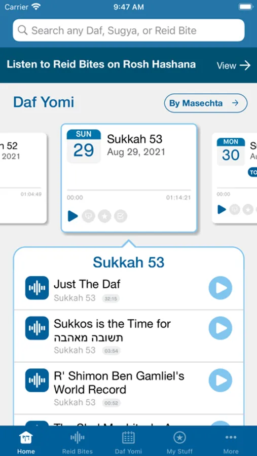 Access an energy infused Daf Yomi Shuir with engaging commentaries and Halacha Lamaseh - wherever you are.