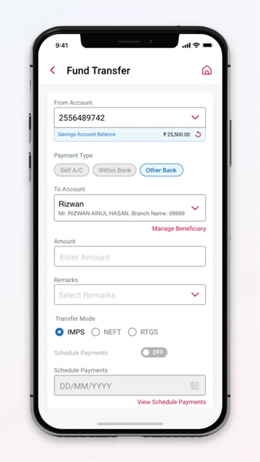 * Fund transfer to other banks through NEFT/IMPS.