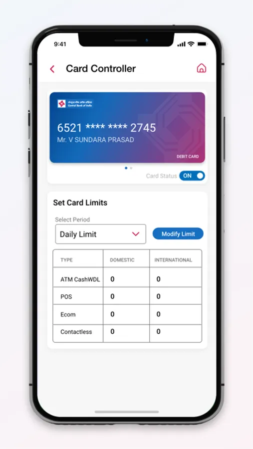 * Debit Card Control (On/Off & Limit Setting) option.