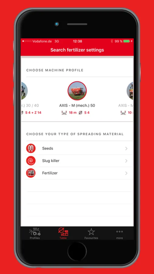 The RAUCH-App (formerly "Fertilizer Chart") is an interactive spreading chart for current and older RAUCH-Fertilizer-Spreaders series which can also be used without internet connection.