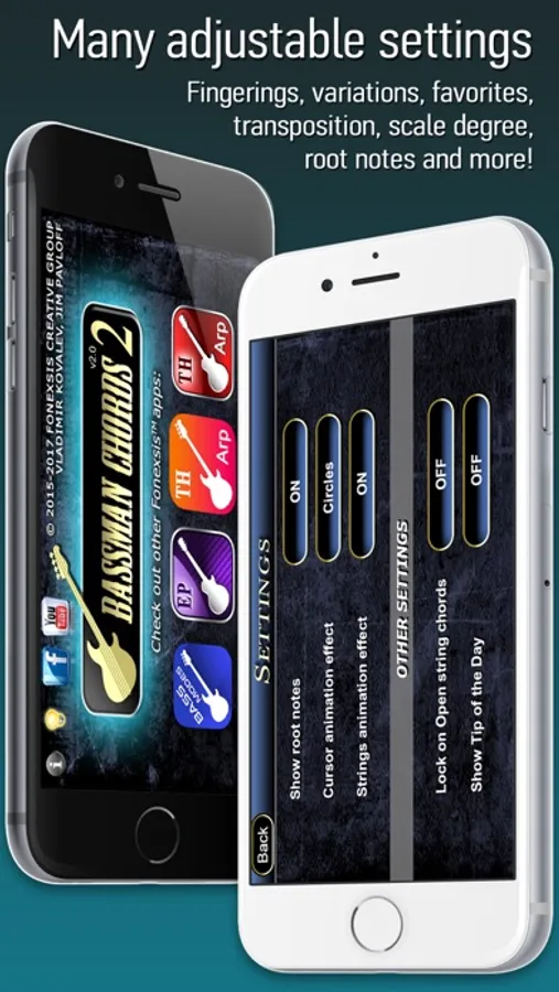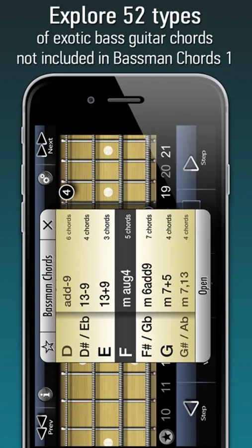 ● more than 200 different chords for bass (not included in Bassman Chords 1 app), which can be easily transposed to any desired key, resulting in about 2,400 of total chords!