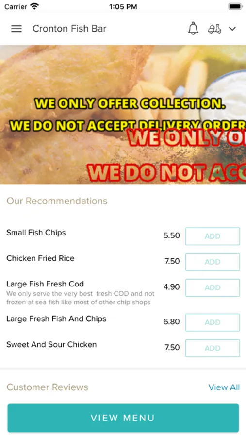 We now have an app where you can see our whole menu, order online even pay online and have our delicious food delivered to you in the comfort of your own home! Please feel free to browse our menu online, and we hope to be serving you soon.