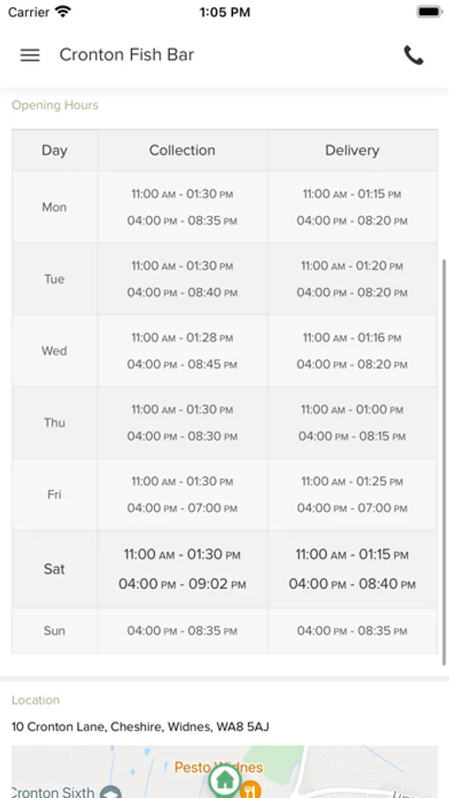 Cronton Fish Bar is located in Widnes. Here at Cronton Fish Bar, we’re proud to offer some of the tastiest fish and chips in the UK - on our menu you can also find all your other chip shop favourites such as burgers, wraps, and more! All our authentic food is freshly prepared with the finest ingredients and cooked to perfection by our skilled chefs.