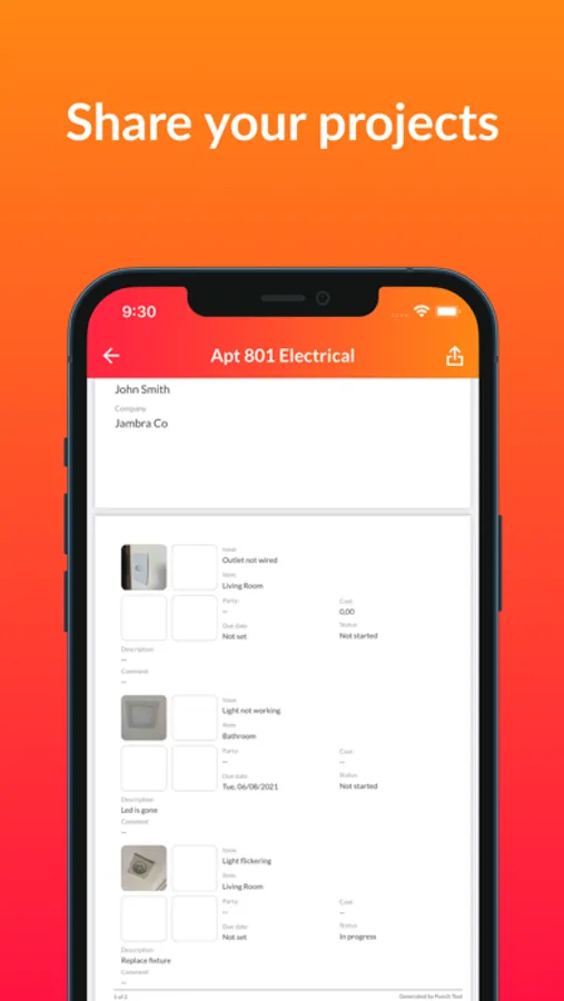Punch Tool makes it easy to keep your project on track. List the issues and take photos and when you’re done, print/email a PDF to whoever needs it!