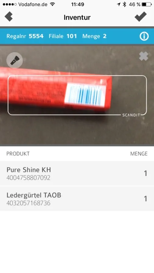 Die Inventur-App ScanTouch wird vor allem aufgrund ihrer praktischen Barcode-Scanner-Funktion im Einzelhandel eingesetzt. Die Barcodes der Artikel werden mit der Gerätekamera erfasst und von der App automatisch in die Inventurliste eingepflegt.