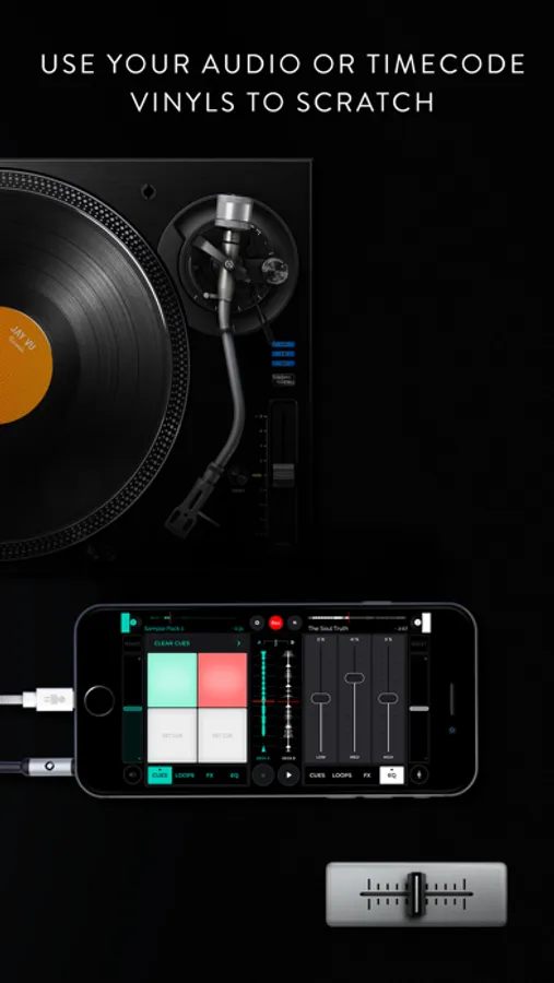 - Choose your setup: smartphone, tablet or both. Timecode or standard audio vinyls. Midi software. There is no limit to what you can accomplish.