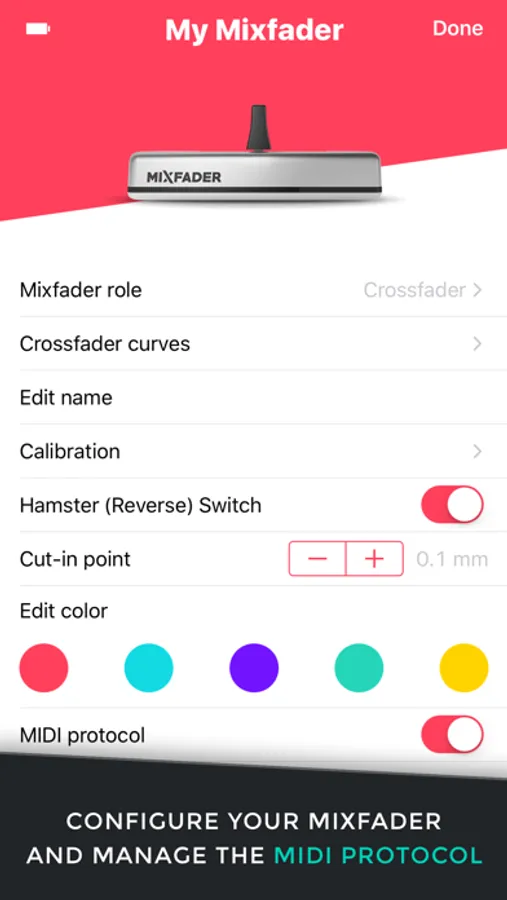 - Assign your Mixfader to any role (Crossfader, Volume or Pitch fader, audio effect...)