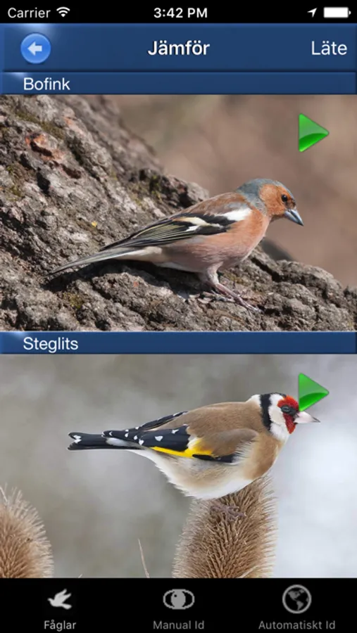 Identifiera fåglar i Sverige med hjälp av deras läten! Detta är världens enda app som automatiskt känner igen läten från fåglar.