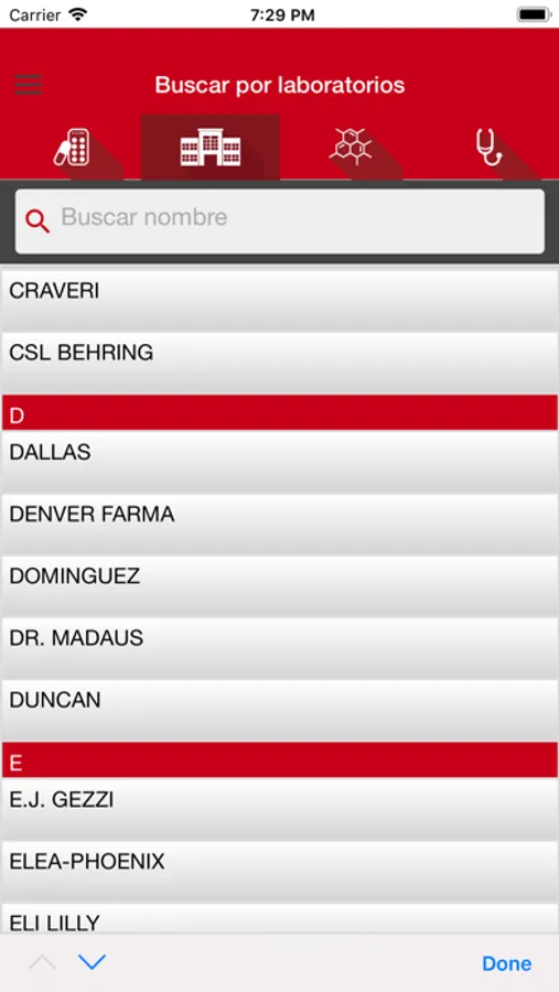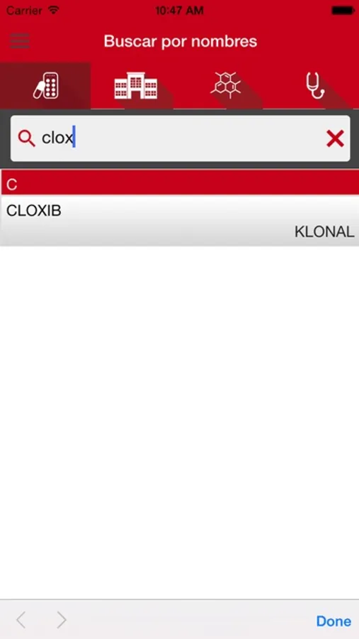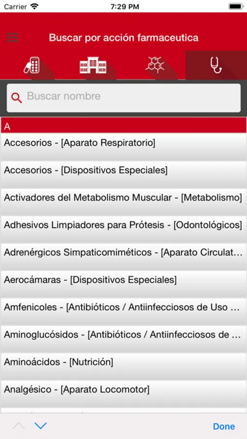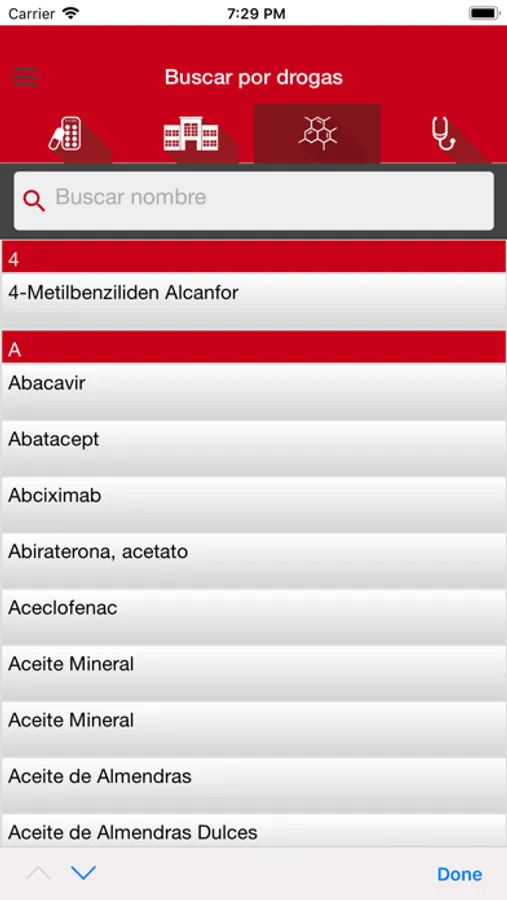 La aplicación permite la búsqueda de productos medicinales por 4 métodos.