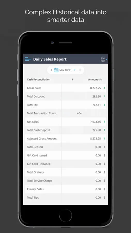 Zip POS Dashboard provides a dimensional view of business Cash Reports to help you manage your daily cash balance on a weekly basis.