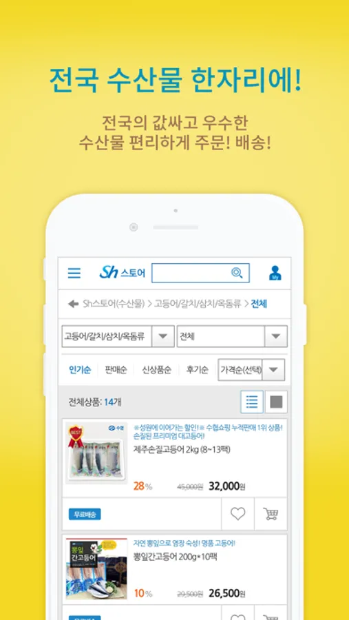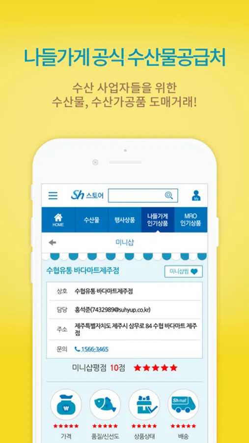 Sh스토어는 수협중앙회에서 전국의 우수한 수산물을 저렴하게 공급하고, 기업 소모성자재(MRO) 상품을 합리적인 가격에 공급하는 수협 온라인몰입니다.