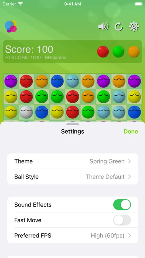 Ball Lines Classic is the iOS port of the once popular classic PC game called Color Lines. The game's objective is to remove balls by forming lines (horizontal, vertical or diagonal) of at least five balls of the same color. Balls on a line are removed and points are given.