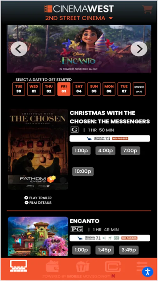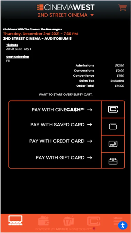 A whole new way of going to the movies is here! Download the NEW Cinema West mobile app. New features include, saved card credit card payments, purchase history, ability to purchase on the web and redeem in app, improved ticketing experience and best of all, pre-order your concessions for a faster checkin experience at the theatre. Plus a few other special features to make your moviegoing experience better then ever!