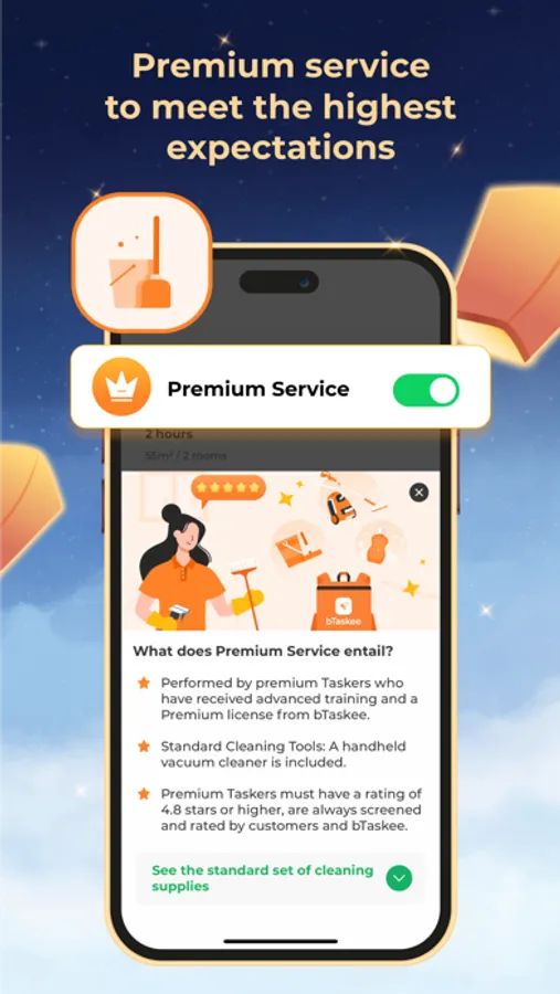 You can pre-order Cleaner during the Tet holiday. This will help you take control of your time . With bTaskee you don't have to worry about finding a Cleaner.