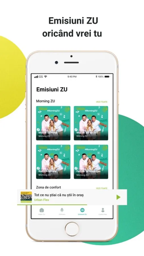 Pune aplicația oficială Radio ZU pe smartphone și poți să asculți cel mai vesel post de radio din România oriunde ai fi în lume. Dimineața îi ai pe Daniel Buzdugan și Mihai Morar aproape ascultând Morning ZU, iar apoi, DJ-ii ZU îți fac ziua mai bună cu efervescența lor și cu un playlist care conține toate hiturile momentului.