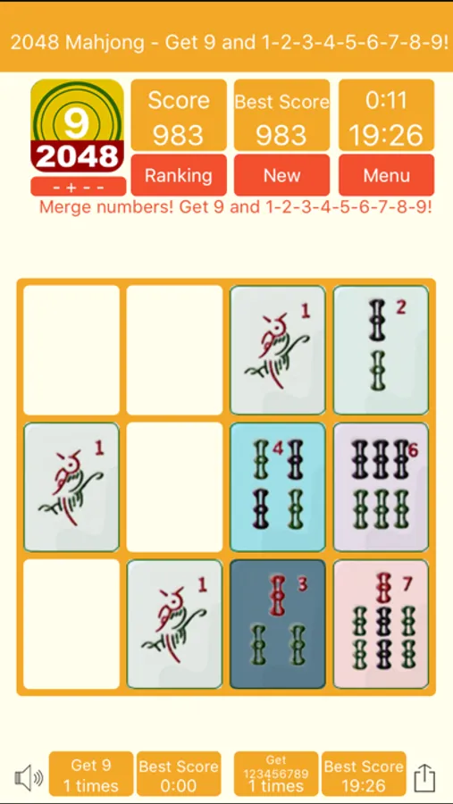 The operation is simple. Just swipe the screen! Same numbers or Mahjong tiles on the swiping direction will be merged automatically.