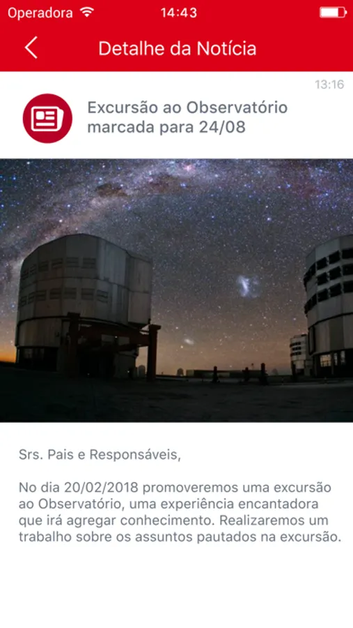 Com este aplicativo, os pais, responsáveis e professores poderão receber as últimas informações da escola, as notícias do dia a dia do seus filhos e o calendário de atividades escolares.