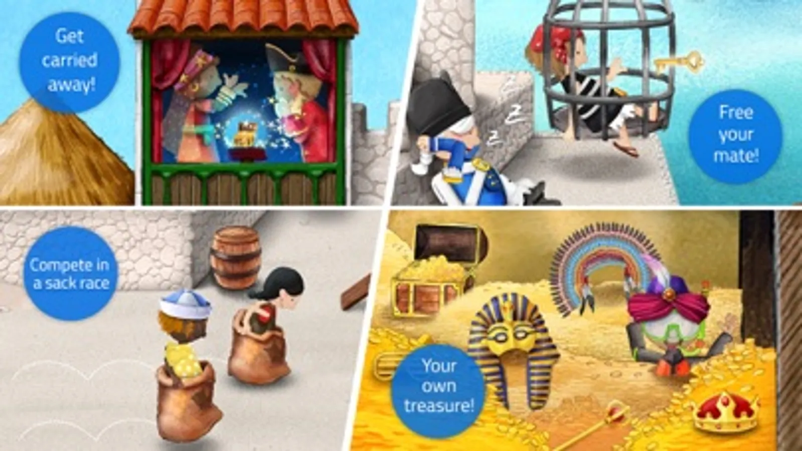 This app lets kids discover the world of pirates, helping them learn the principle of cause and effect while they play and engage with exciting situations.