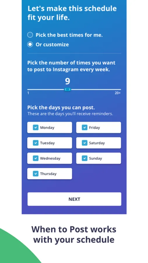 You get a fully customized schedule based on what you’re trying to achieve with your Instagram account.