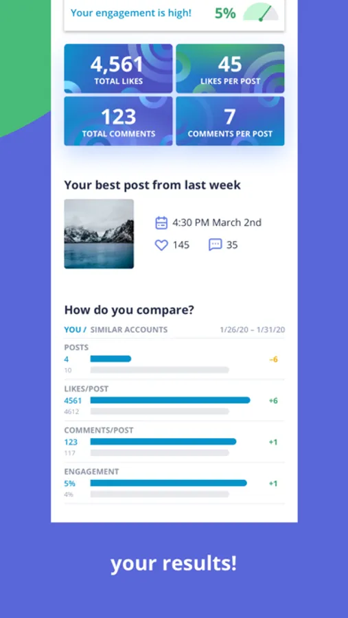 When to Post is also a great Instagram habit tracker. Weekly stats tell you how often your Instagram posts were sent at the best times.