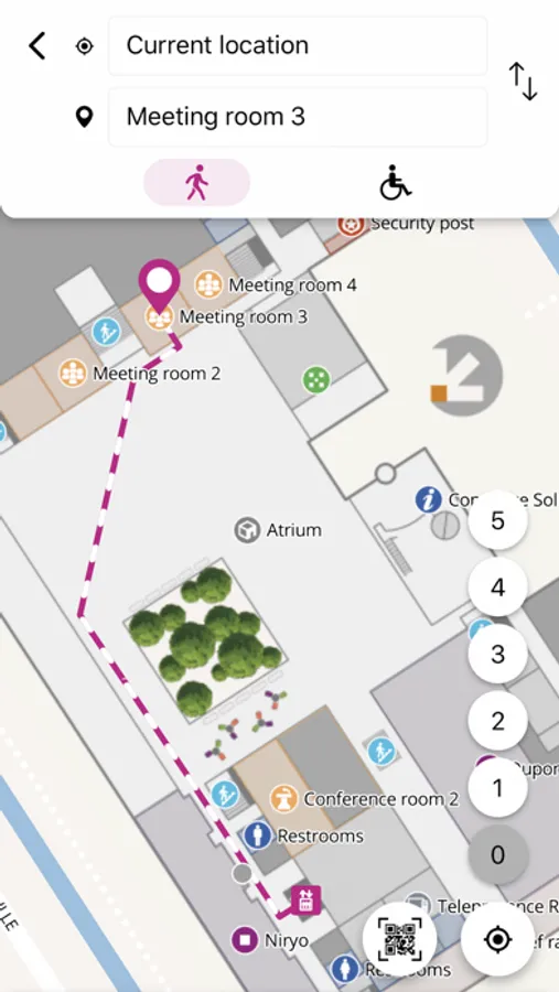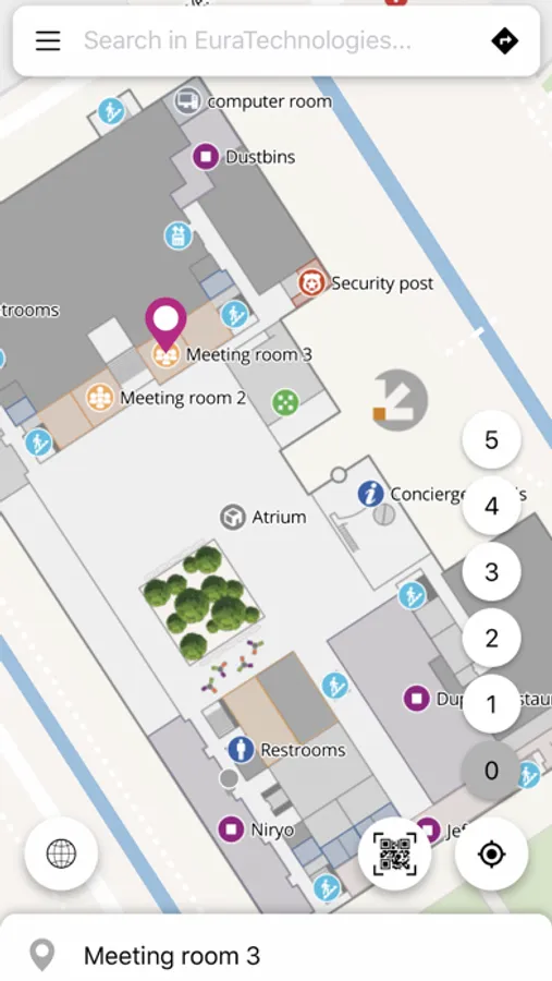 While a GPS is perfect outdoors, its accuracy drastically drops indoors. That’s the reason why Mapwize was created to work with most indoor positioning technologies: iBeacon, Wi-Fi, Li-Fi, QR codes, etc. If you happen to see a Mapwize QR code in a building, scan it with the integrated reader to be positioned on the map.