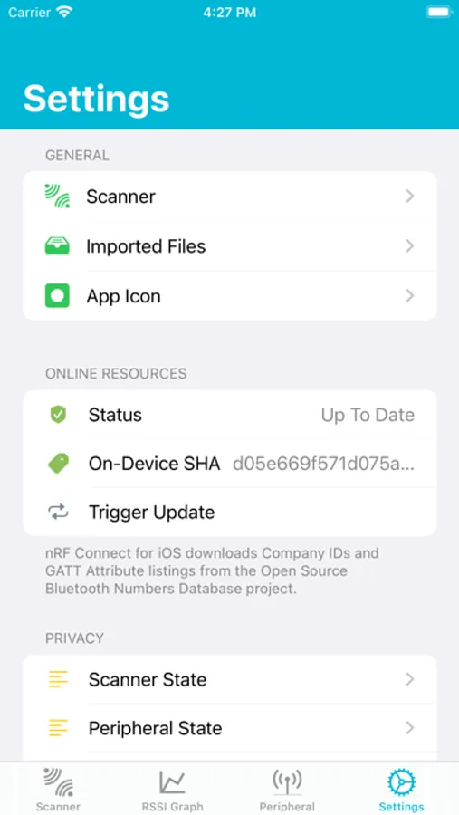 • Privacy-Oriented: Full-Disclosure of Scanned Data, Advertised Data, and User-Performed Actions held by nRF Connect.