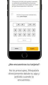 Productos: Además se incluyen accesos directos a sus productos y vistas como cuentas, tarjetas, depósitos, fondos, bolsa o planes de pensiones.