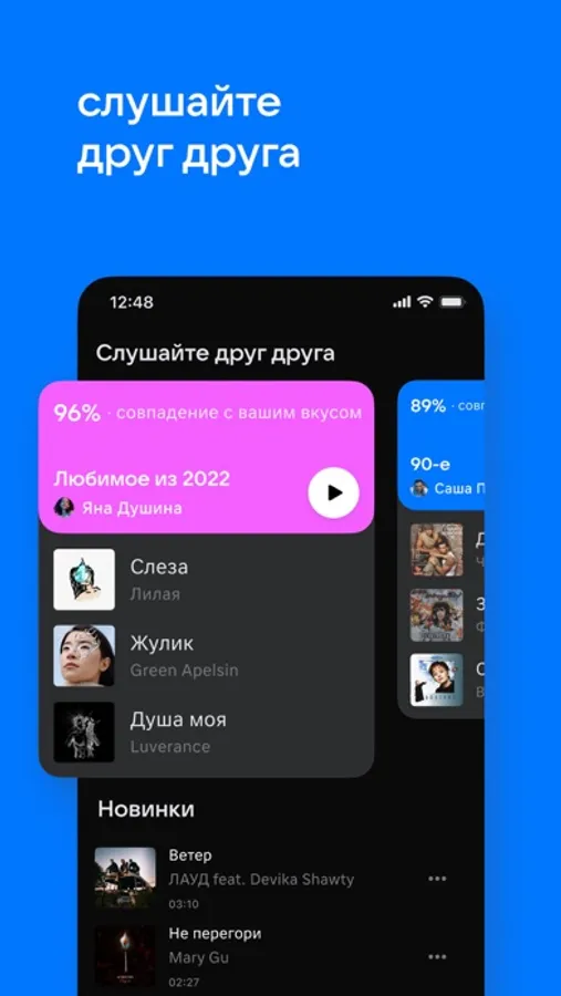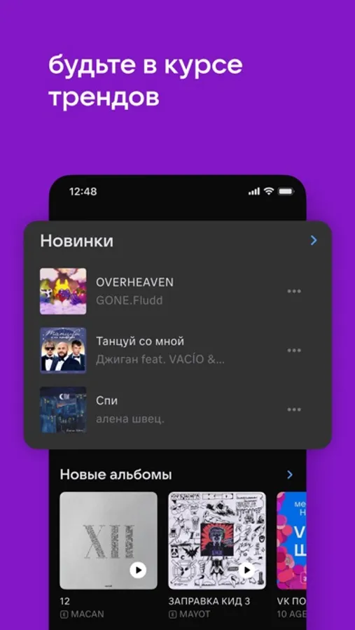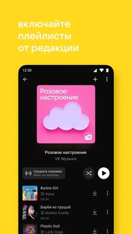 Music mixes are formed based on your preferences. Just select a track, artist, album or playlist, and let the VK Music player create a mix to your taste.