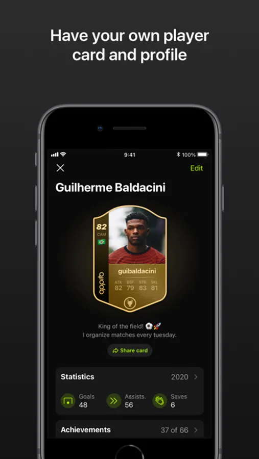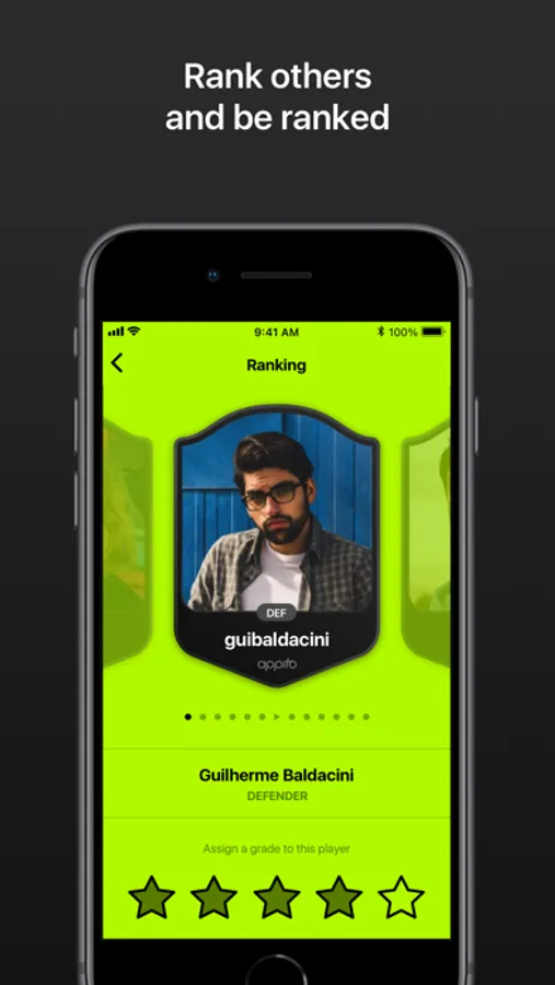 - At the end of the game, all players evaluate each other, generating a ranking of the best players in the match, top scorer, top playmaker and best defender. This way, the ranking is generated from the grades and statistics that each player receives from other players.