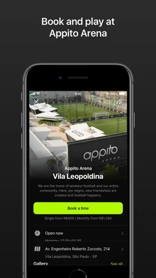 Appito allows you to book a field, organize matches and even find a game that will happen near you or that has your player profile.