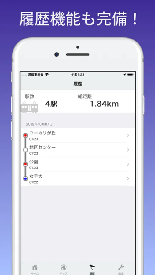 ・バックグラウンド動作により、駅と駅の切り替わりを通知でお知らせ