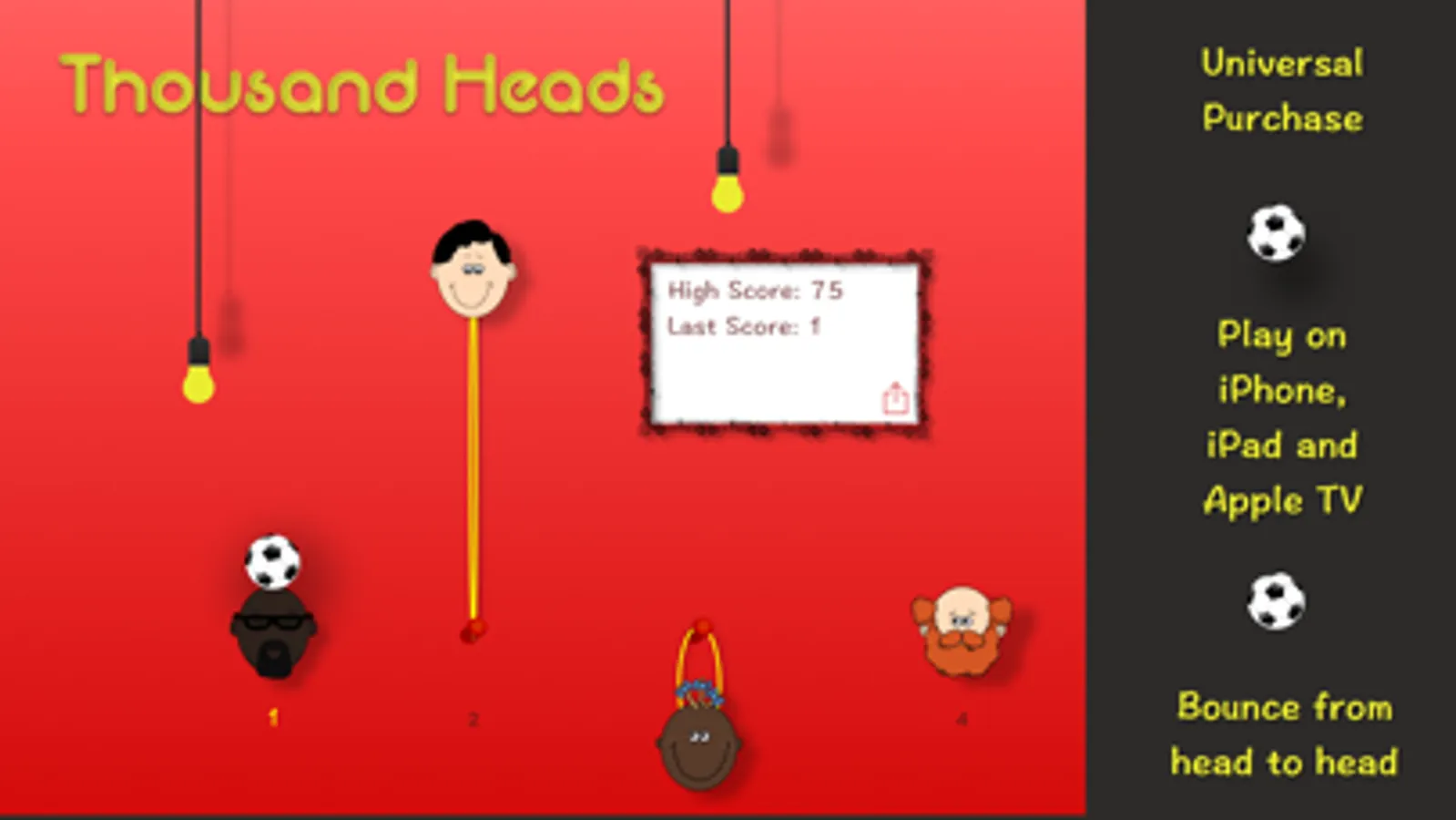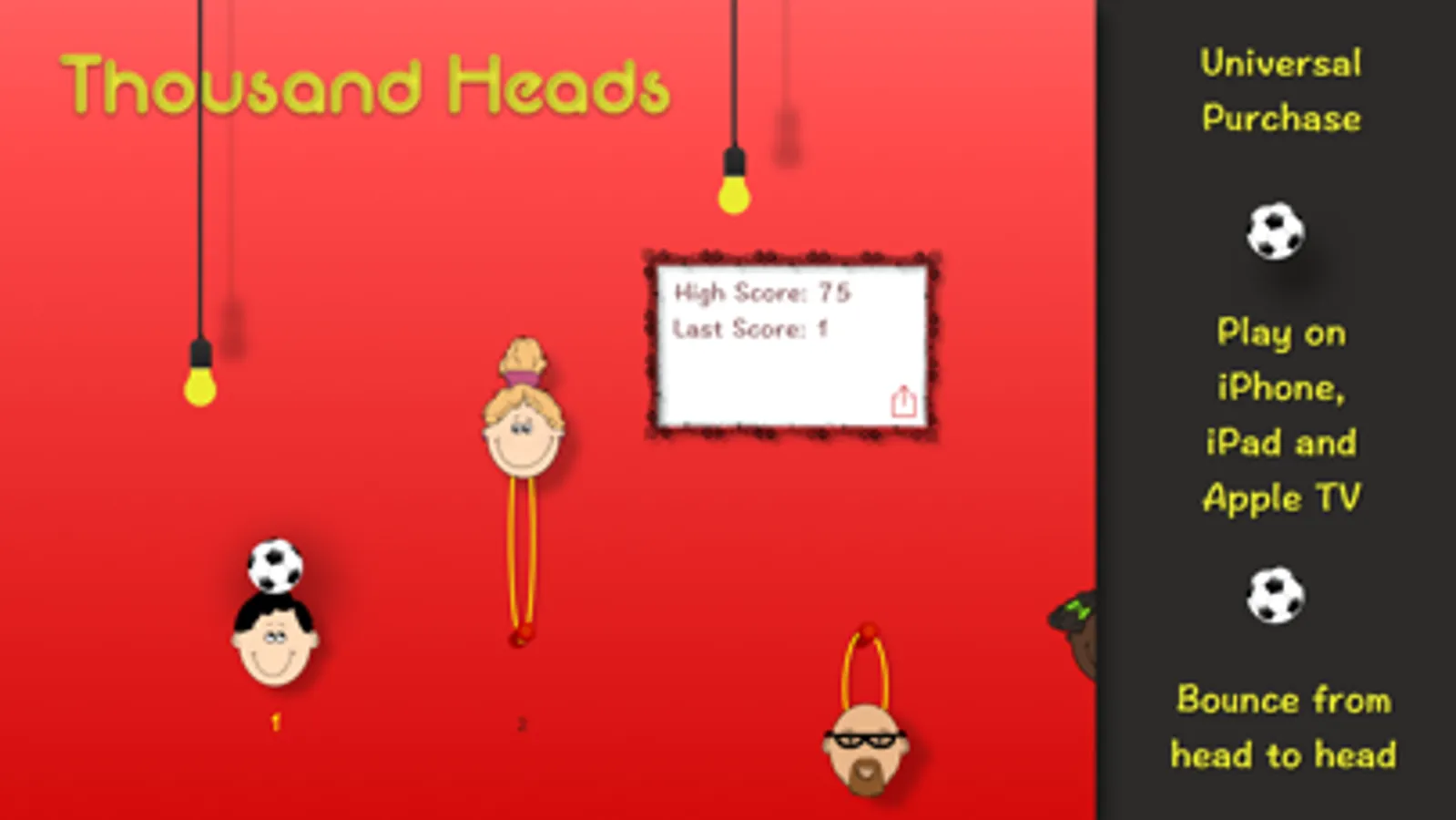Thousand heads attached to thousand rubber bands. Pull down to knock the ball from head to head. Keep it up for as many heads as you can. There's 1000 to go.
