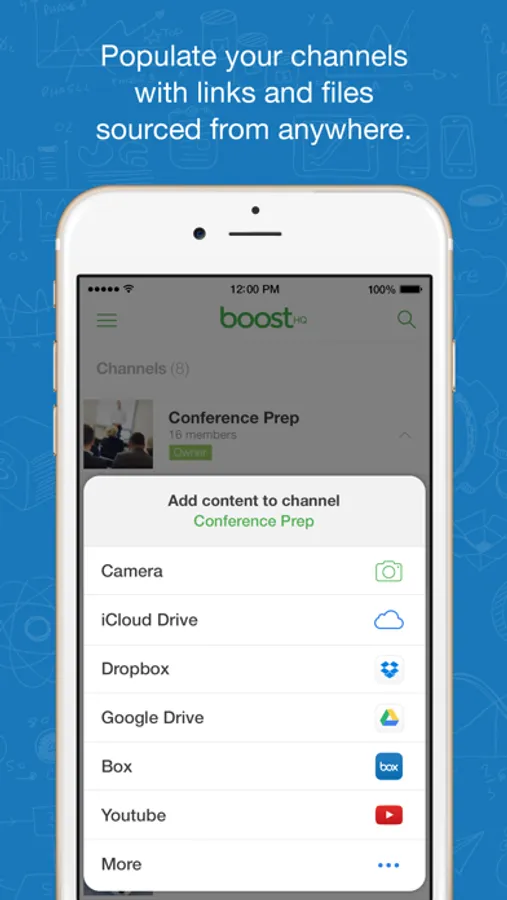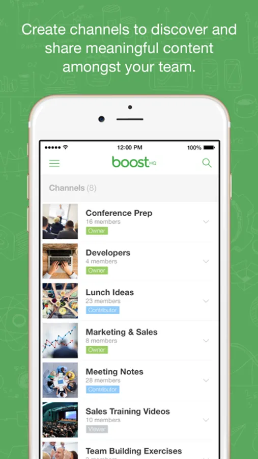 With BoostHQ, content is organized into topic specific groups and can be shared from all the sources you already use (Safari, DropBox, Youtube, Google Docs, etc). Feedback and analytics on shared content lets you know what your team finds useful.
