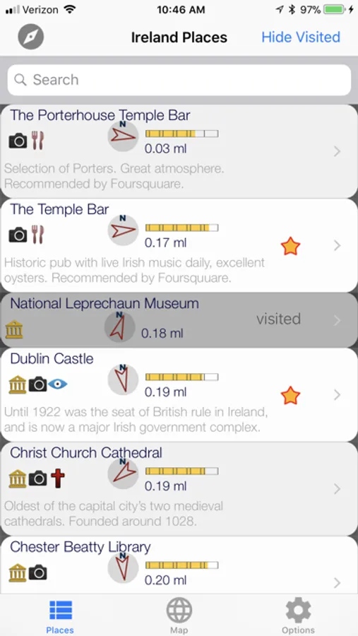 eGO Ireland is travel app designed for travelers planning to visit Ireland. Included both Republic of Ireland and Northern Ireland. It contains dozens of famous places, museums, some hiking trails or scenic photography vista points, other points of interest with short description, sample photos and useful links. App shows in real-time distances and directions to locations. It also allows to add user defined locations, hotels etc.