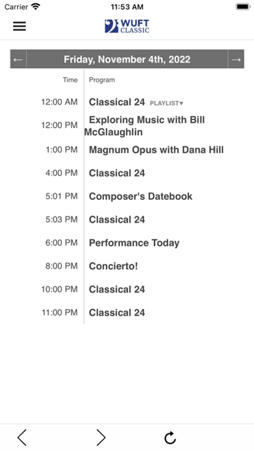 The WUFT Classic Public Radio App allows you to listen to WUFT Classic, pause and rewind the live audio, view the program schedule, and wake up to WUFT with the alarm clock!