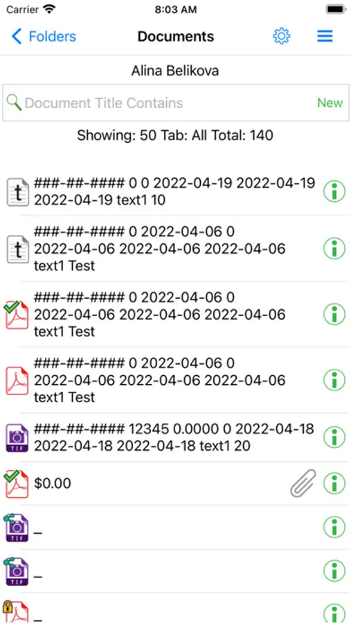 - Perform quick search/filter at the cabinet, folder, or document levels.