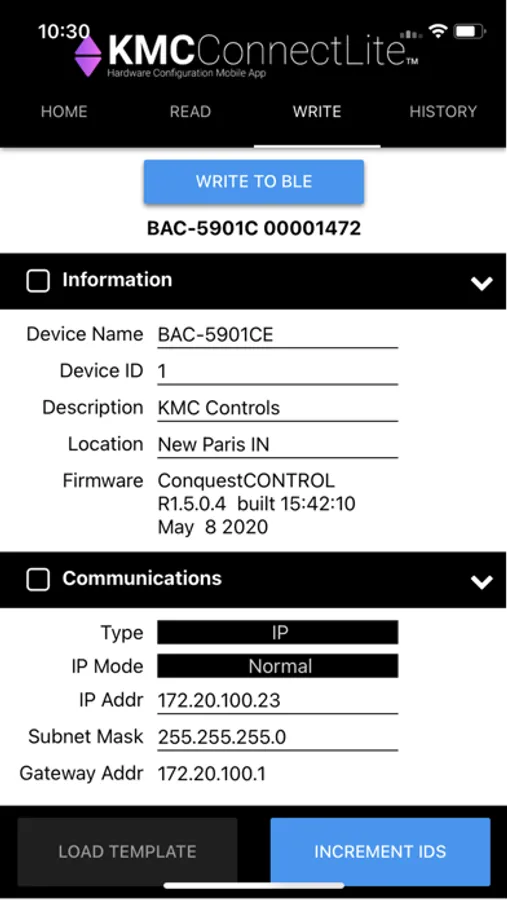 KMC Connect Lite saves time and money by providing fast in the office or in the field configuration of unopened and un-powered KMC Conquest controllers using NFC (Near Field Communication) technology.