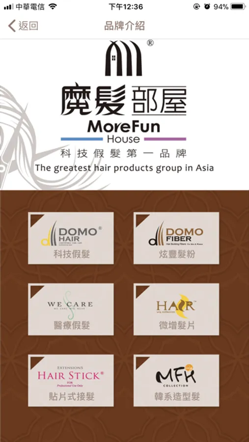 亞洲最大髮料集團,旗下擁有七大假髮/接髮品牌(WE CARE/ DOMO HAIR/ HAIR PLUS / HAIR STICK / MFH / BASSY)。